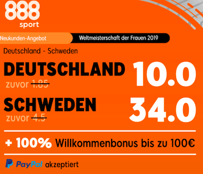 888sport erhöht die Quoten auf Deutschland – Schweden bei der Frauen WM 2019
