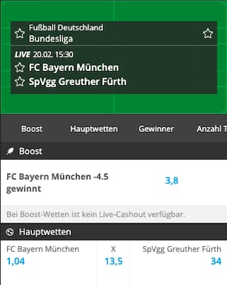 Bayern Top-Quote gegen Greuther Fürth bei Neobet